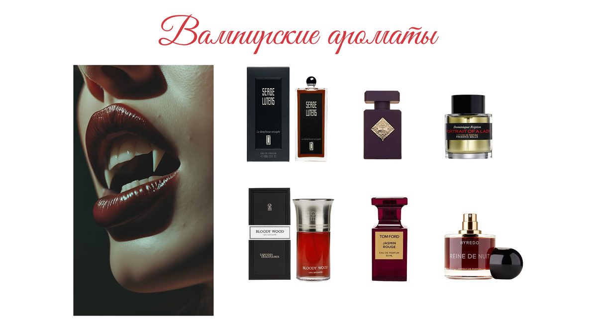 Эти "вампирские" ароматы — идеальный выбор для тех, кто хочет почувствовать себя загадочным, притягательным и немного опасным. Они подойдут для вечерних выходов, романтических свиданий или просто для тех моментов, когда хочется почувствовать себя героем мистической истории.
