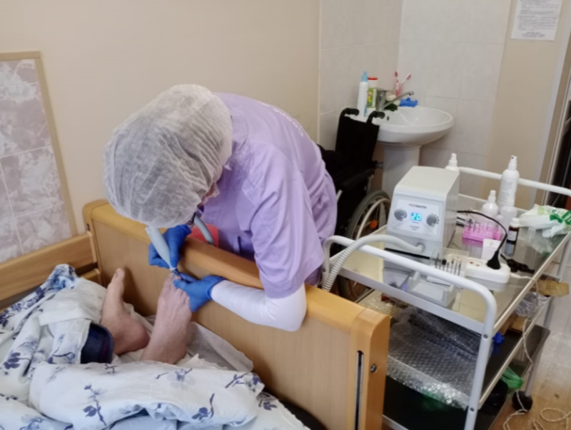 Состояние ногтей остается одной из серьезных проблем пожилых людей и объектом пристального внимания наших специалистов. Порой беда достигает такого масштаба, что, казалось бы, еще бодрый человек не может выйти даже из комнаты, не то чтобы на улицу, а у людей, прикованных к инвалидному креслу, возникают дополнительные недомогания, если нет ухода за ногтями. Мы регулярно бываем в домах престарелых и ПНИ, и видя ситуацию изнутри, подготовили бланк мониторинга, который помогает оценить положение дел с этим вопросом в каждом из четырех учреждений, вошедших в проект по подологии. Немного ликбеза. Когда справляться с уходом за ногами подопечным социальных учреждений самим становится все труднее, на помощь приходит специалист — подолог, который решает многие проблемы, возникающие с ногтями, в том числе осложнения, связанные с диабетической стопой, трещинами, вросшими ногтями, стержневыми мозолями. В этом отличие гигиенического педикюра от стандартного. «Безусловно важно следить за тем, чтобы н