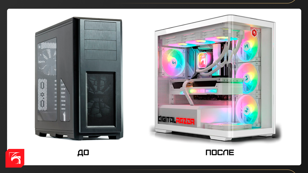 Если вам нужен совет или помощь с апгрейдом — можно обратиться к специалистам DigitalRazor. Напишите в этот Telegram-бот. Ответим на все вопросы, проконсультируем по комплектующим и спроектируем вам новую сборку. У нас есть сервис трейд-ин — отличный способ сэкономить на апгрейде. Вы приносите свой старый компьютер, мы его оцениваем и вычитаем эту сумму из стоимости вашего нового ПК. Важное условие: компьютер должен быть в рабочем состоянии и не старше 10 лет.