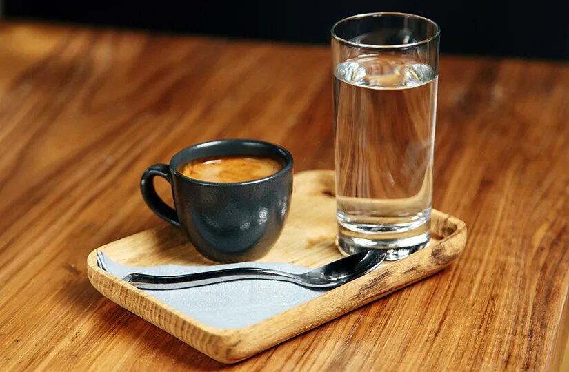 Сделайте пару глотков воды до первого глотка эспрессо. Это особенно важно на дегустациях, где оценивают несколько сортов подряд. Эспрессо — концентрат кофейных масел и кислот. Вода помогает: Интересный факт: