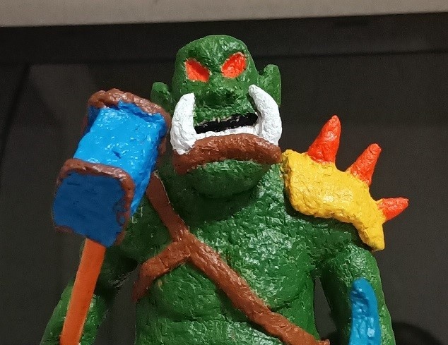 · Всем привет. Сегодня мы будем делать орка из туалетной бумаги. На которой написано, что она «85 мм в длину» 😂. Смешно? Ну что начнём. · Орк получился очень смешной, но одновременно и злой. На голове у него очень большая нижняя губа и большие клыки белого цвета. На теле у него ремень, а само тело толстое. Между ног 😂 ему прикрывает оборванная тряпка, завязанная верёвкой, Ноги, тело, руки и голову мы красили в зелёный. В руках у него топор и молот. Топор немного в красной краске (кровь). Глаза у него красные без зрачков. На одном плече у него наплечник с красными шипами. · Переходим к основной части. Ручки для топора и молота мы делали из замоченных в клее газет, из которых потом делали трубочки. Наплечники, молоты и остальные элементы декора мы делали отдельно. Голову делать не так уж и сложно, так как это просто овал, к которому прикреплены уши, одна губа 🤣, как не странно, и длинные клыки. Ремень – это, просто небольшие плоские полосочки (одна идёт под мышку, а другая на плечо).