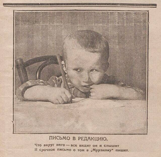 Любопытный факт: до революции объявления о поиске друзей в детских журналах вообще не печатались. А вот в 1920-х такие объявления уже вовсю начали появляться. Произошло это благодаря рубрике «Мурзилкина почта», где юные читатели делились историями из своей жизни. Вот, например, Федя и Василек Тихомировы из Ленинграда гордо рапортуют в 1928 году: «Мама принесла нам копилку. Мы туда кладем деньги, и мамочка их относит в сберегательную кассу. Я, Василек, копилку назвала „Советская власть“». А семилетний Юра Петров в 1926 году хвастается своей находчивостью: «Я поймал галку. Выдрессировал ее, и она понимает меня: когда я ей говорю: „Будь готова“, она отвечает мне „кар-кар“, то есть: „всегда готова“». Но первая дружба по переписке завязалась не на любви к копилкам и дрессуре, а на маленьких трагедиях. Шестилетний Витя Жиряков в 1926 году поделился горем: «Из приложения к „Мурзилке“ я склеил… „Кооператив“… и сел пить чай. А в это время наш серенький котенок незаметно прокрался к „к
