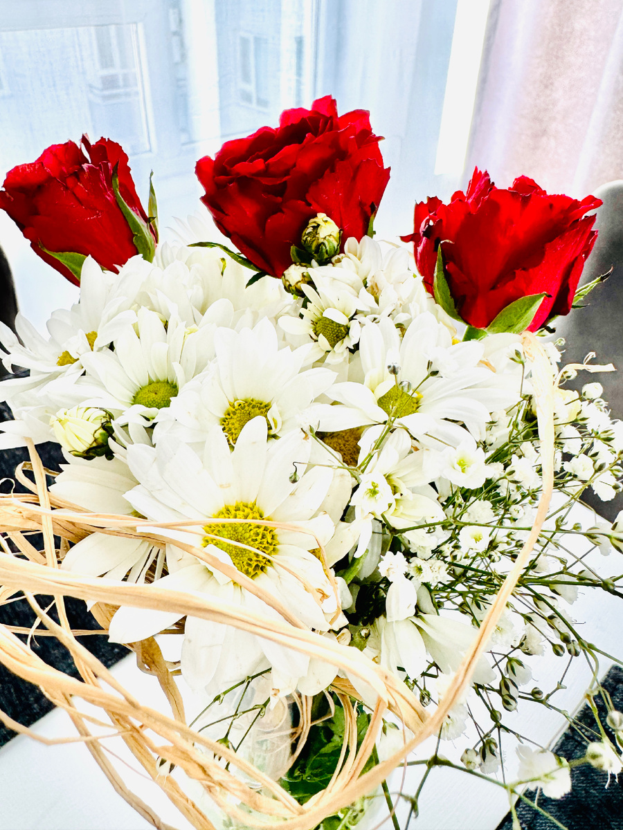 Приехала домой и тут курьер привез цветочки, вместе с вазой) Приятно)