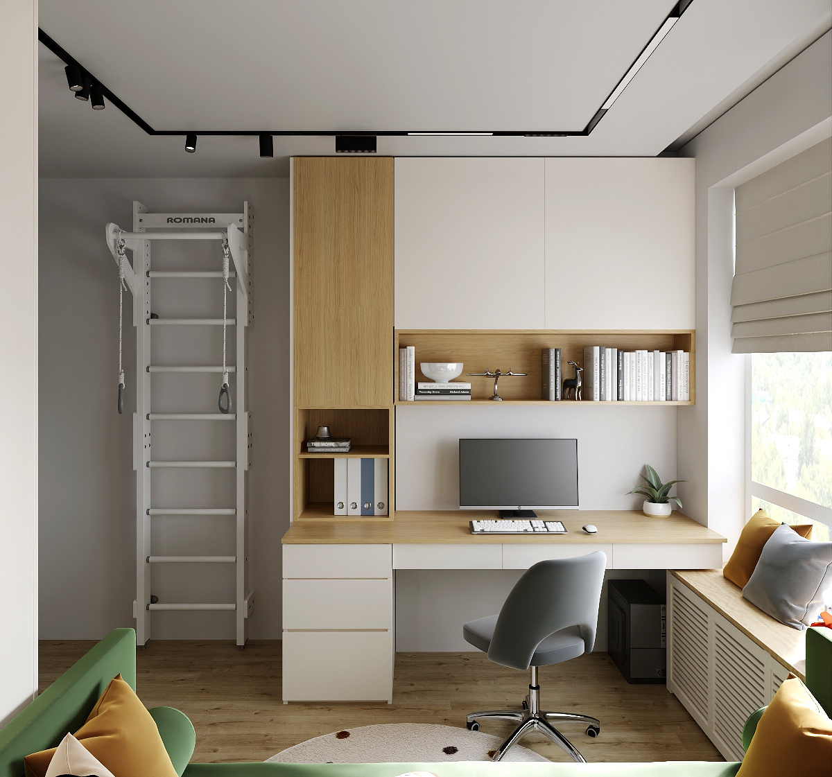 Задача была на маленьком пространстве уместить: Стиль современный, нейтральные оттенки с акцентным цветом. Подбор отделки. Визуализации. Заказать Дизайн проект, посмотреть портфолио.
