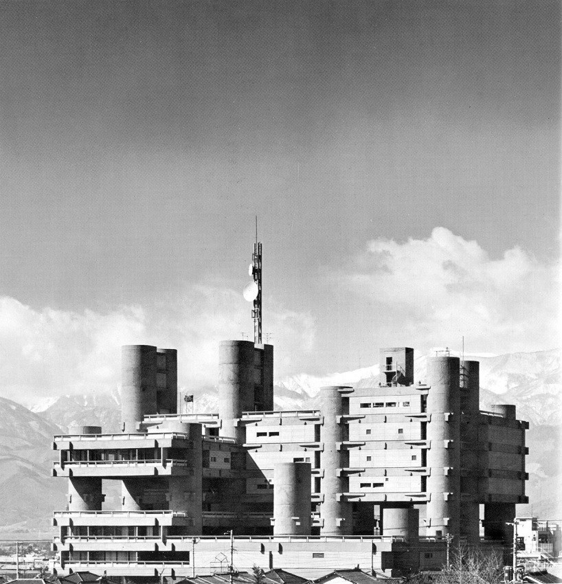 Это пресс-центр и телецентр Сидзуоки, который был построен в 1967 году по проекту архитектора Кэндзо Тангэ, главного идеолога течения метаболизма (хотя сам он себя к метаболистам не относил).