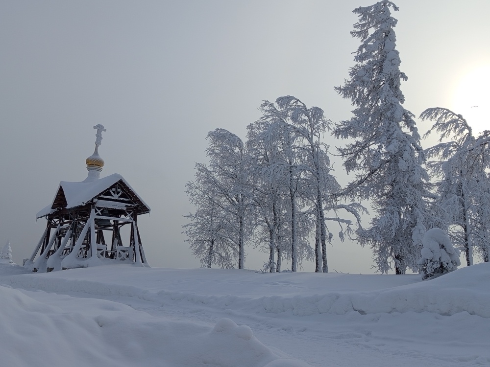 Дорогие друзья приветствую всех вас на канале Сегодня судьба и жена занесли меня на Белую гору под Пермью Ну разве не зимняя сказка? Ощущаешь себя в каком-то потустороннем мире. Такое ощущение сложилось зимой, летом как-то всё обыденнее. Хотя конечно кощунство говорить "обыденно" о таком месте. Для туристов Пермского края, паломников это место в топ 5-ке. Не хочется грузить вас многострадальной историей этого места, хотя напоминаний не мало: Просто хочу показать вам волшебство этого Берендеева царства деревья фонарные столбы и сооружения окружённые кухтой (косматым инеем). Немножко о территории. Крестовоздвиженский храм, его видно ещё издалека. На подъезде к горе. Там есть верхний храм, где службы идут по выходным и праздникам и нижний храм, где службы проводятся по будням. Одновременно храм вмещает до 8000 человек. Для меня было открытием эта икона, которая оказывается была в монастыре ещё до революции и написанная во славу дома Романовых: Или эта, там же в нижнем храме, подаренная ж