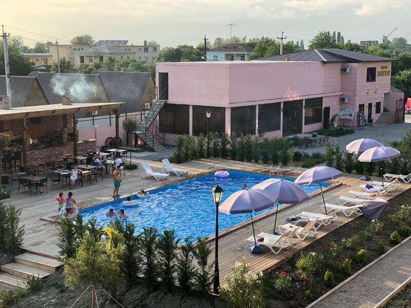 Турагентом выступила наша макеевская компания "Агава-Тур", я подписалась на неё в Телеграм и нашла там этот самый отель "Элион" в Алахадзы, куда можно было взять путевки на майские праздники по 7 тыс. руб. на человека за 6 дней. В объявлении и на сайте отеля были вот такие красочные фотографии отеля с голубым бассейном и шезлонгами: