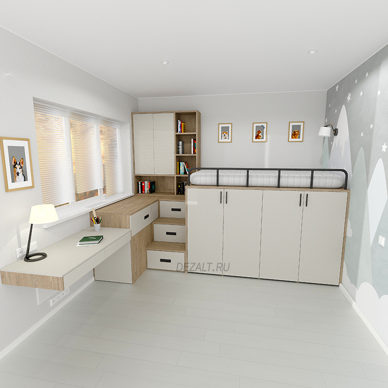 Написал мне мебельщик из Дзена, он подписан на мой канал и сам ведет свой в Дзене, про путешествия. Спрашивает - Эдуард, ты делал хоть раз эти новомодные детские, когда высокая кровать, стол у окна, шкафов вообще нет? И присылает мне гифку, на которой в пустой комнате появляется мебель из ниоткуда. Да, попадались мне такие видео-рендеры. Говорю - Нет Александр, ни разу такую мебель не делал и даже не проектировал. Он - Вот и я еще не делал, а просят. Вот ты бы как её сконструировал? Дальше пошли технические вопросы, на которые я сходу тоже ответить не смог. Говорю ему - Ну шли что там есть у тебя, габариты, может я попробую спроектировать, мне самому интересно. Пока есть время. Он прислал свою схему и размеры. Начал чертить. Сразу всплыла куча вопросов, на которые мы оба не знали ответы. Я рисовал в прямом эфире и Александр до упора смотрел, хотя ему на следующий день на работу нужно было. Почти пять часов я над не пыхтел. Первый вопрос у меня возник - что за вешалки выкатные внутр