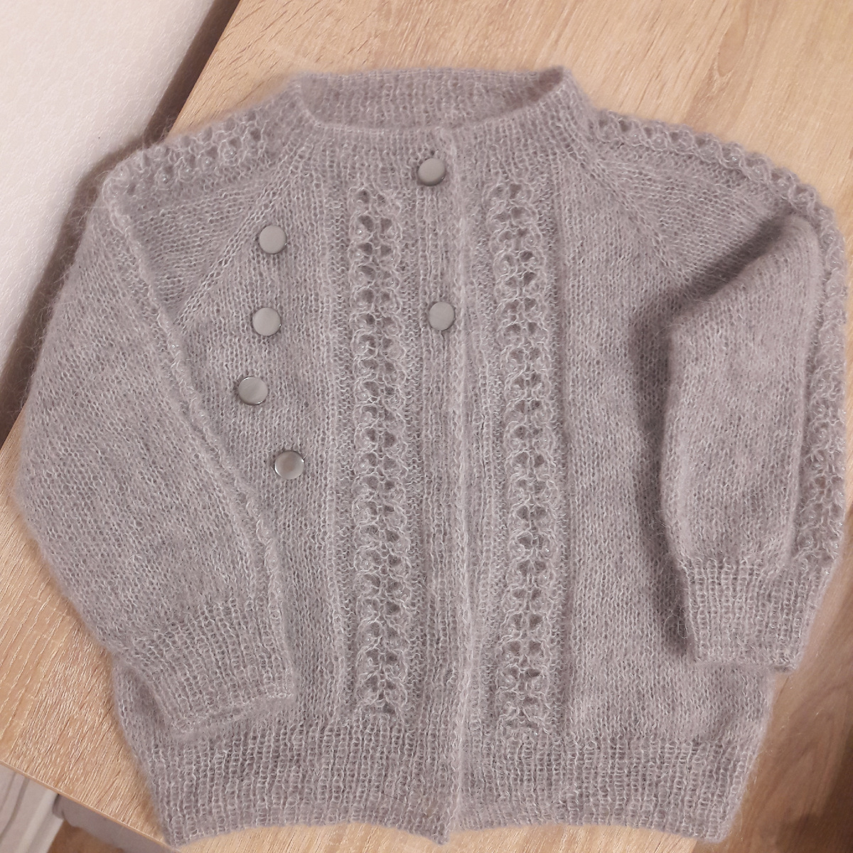 Так уже получается, что в основном в выходные я могу что-то показать. Я закончила кардиган с ажурными полосами для Верочки. Уже постиран, только пуговицы дочь будет сама пришивать. Постараюсь запечатлеть на обладательнице, пока не получилось, уж сильно вертлявая была в пятницу Напомню, что вязала из пряжи Lanificio dell Olivo QUEBEC