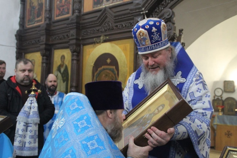 По заамвонной молитве епископ Иларион совершил славление празднику. По окончании богослужения архипастырь зачитал Патриаршее обращение по случаю празднования Дня православной молодежи, а также поздравил настоятеля и прихожан с престольным праздником и подарил икону священномученика Харалампия. По материалам сайта Кинешемской епархии