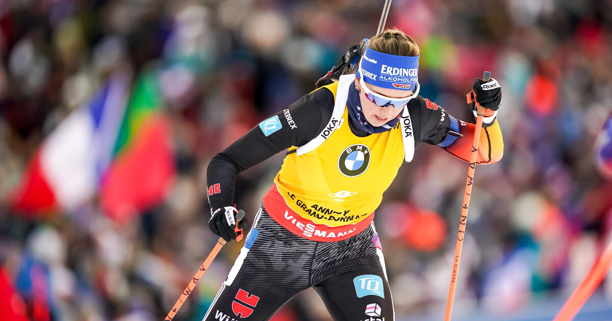 Чемпионат мира по биатлону-2025 Ленцерхайде, Швейцария Женщины Гонка преследования 1. Франциска Пройс (Германия) – 26.58,9 (0) 2. Эльвира Оберг (Швеция) – 39,1 (1) 3. Жюстин Брезаз-Буше (Франция) – 40,9 (3) 4. Лу Жанмонно (Франция) – 1.02,2 (2) 5. Лена Хекки-Гросс (Швейцария) – 1.28,3 (4) 6. Суви Минккинен (Финляндия) – 1.41,1 (2) 7. Анна Магнуссон (Швеция) – 1.44,0 (3) 8. Микела Каррара (Италия) – 1.44,2 (5) 9. Элла Халварссон (Швеция) – 1.47,9 (4) 10. Селина Гротиан (Германия) – 1.53,0 (3) 11. Ханна Оберг (Швеция) – 2.02,7 (5) 12. Жюлия Симон (Франция) – 2.07,6 (6) 13. Осеан Мишлон (Франция) – 2.07,8 (4) 14. Лотте Ли (Бельгия) – 2.25,0 (0) 15. Лиза Тереза Хаузер (Австрия) – 2.38,0 (2) Расписание чемпионата мира по биатлону-2025 в Ленцерхайде