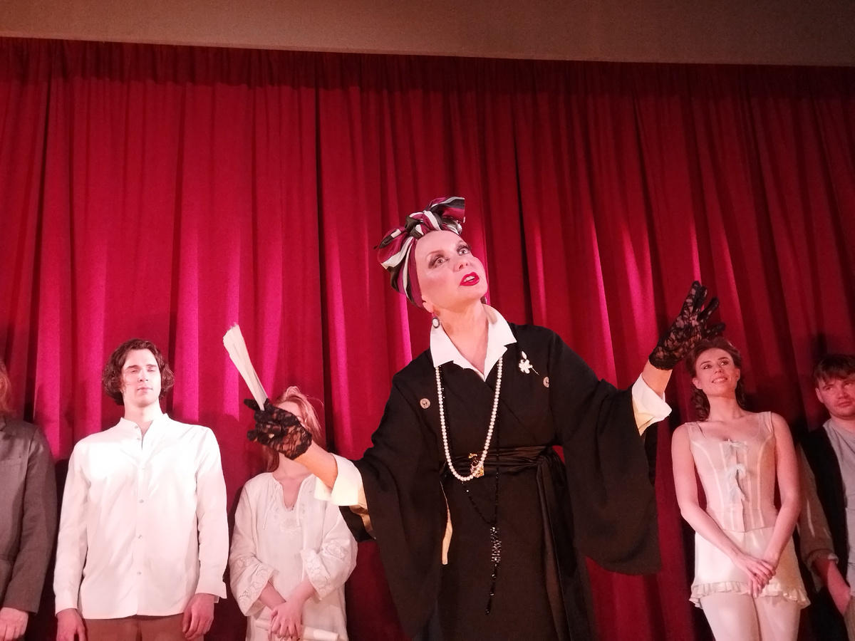 Замечательные актеры играют влюбленную пару графских крепостных - актрису Любу (Дарья Дуженкова) и художника-гримера Аркадия (Сергей Гребенников). А уж как огненно хороша Евдокия Германова аж в трех ролях – грассирующей злой француженки, индийской богини и смешной бабки, вот же чертовка! Charmant да и только! Не каждый раз её можно увидеть в спектакле, мне повезло только во второй заход. Теперь осталось увидеть Леонида Якубовича, хотя как мягкий Леонид Аркадьевич может сыграть мерзкого сладострастного садиста графа для меня большая загадка.
