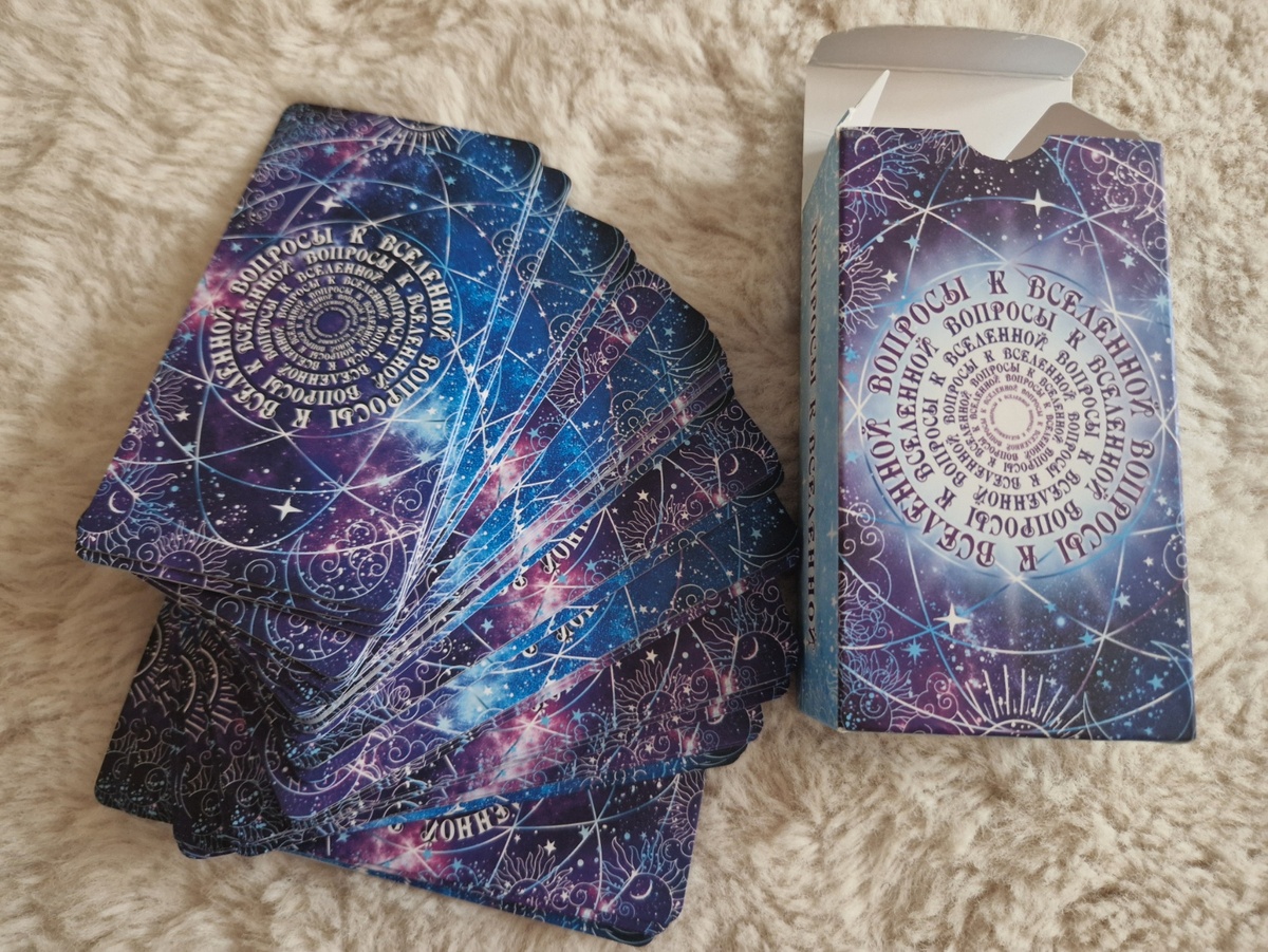 Я не очень люблю нагромождение вещей и предметов, особенно не сторонник таких объёмов, при которых какая-то часть вообще не используется или давно забыта. Поэтому всегда придерживаюсь принципа, что все вещи должны работать, а то, что уже не приносит радость или пылится в углу, должно без сожаления покинуть дом. Способы разные, и они, конечно же варьируются: отдать, продать, подарить, выбросить, обменять и пр. Несколько дней назад у меня был очередной приступ расхламления, и под прицелом моего пристального внимания оказался эзотерический коробок)) Это не очень больших размеров коробка (меньше обувной), в которой у меня хранятся различные Колоды. Кстати, их не так уж и много. Но всё равно захотелось подчистить. Хочу отметить, что пока все Колоды со мной, но я мысленно взяла их на карандаш. Последний раз понаблюдаю за ними и своими ощущениями – и тогда однозначно на выход. Итак, что же оказалось под пристальным вниманием? Метафорические карты «Вопросы к Вселенной» Я неплохо отношусь к МАК