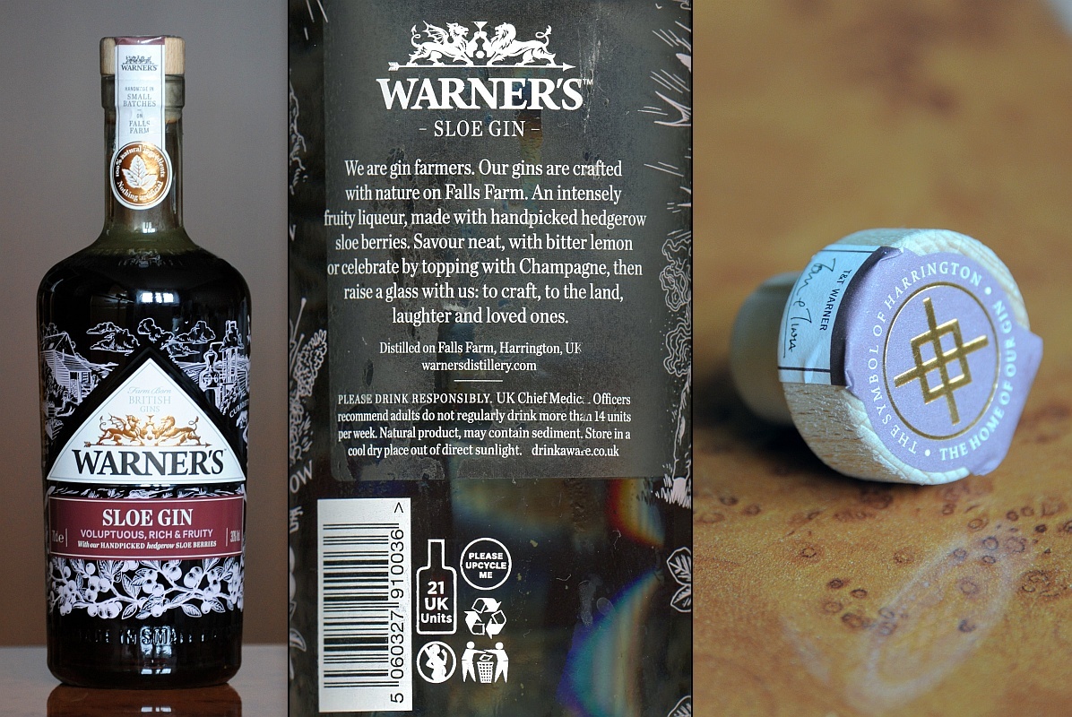 Продолжаем знакомиться с джинами. Обзор от моего друга El_gorra (текст и фото автора, ссылка на оригинал в конце обзора). Warner`s Distillery Sloe Gin. Необычный представитель крепкого направления от знаменитой Warner`s Distillery; в видении производителя это – всё ещё джин, пусть и весьма специфического профиля (Sloe), в то время как по нашим местным правилам такой крепыш соответствует понятию "десертный ликёр", о чём честно заявляет русскоговорящая контр-этикетка. Ну, и действительно, по паре главных параметров (крепость – 30% и сладость – 77,2 грамма на литр) этот дистиллят никак не тянет на звание джин (емнип, не тянет и по европейским спецификациям в части крепости). Тем не менее, производитель позиционирует его именно в джиновой линейке, вот такая данность. Оформление – совершенно типичное для всей джиновой гаммы от Warner`s – приземистая, чуть плечистая бутылка с многочисленными татушками (в данном случае – белого цвета, поскольку собственно жидкость откровенно коричневая)
