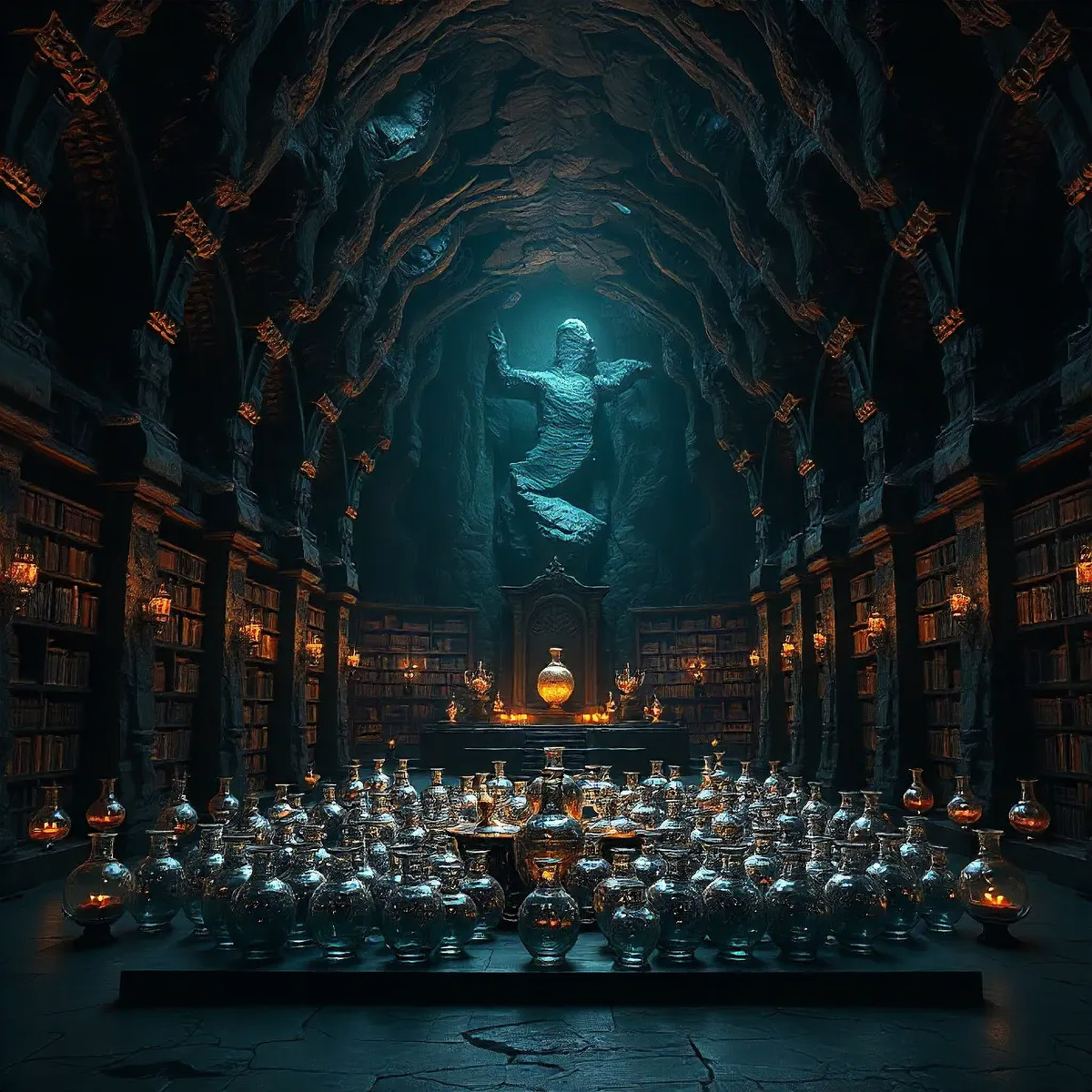 Мы спустились в Зал Шёпотов — библиотеку, где вместо книг стояли сосуды из чёрного стекла. Внутри каждого мерцала душа, пойманная Умбрами. Элиндор поднёс Серп к ближайшему сосуду, и клинок завибрировал, вытягивая и