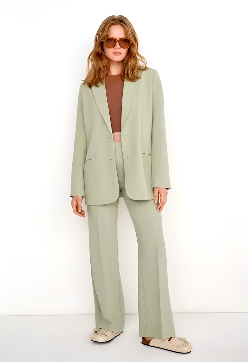 Весна 2025 предлагает приятные глазу оттенки: песочный, жемчужно-серый, мягкий фисташковый. При выборе костюма важно найти баланс – крой должен быть свободным, но силуэт не должен расплываться. Жакет можно выбрать слегка удлинённый, с естественной линией плеча. К нему идеально подойдут прямые или чуть зауженные брюки с комфортной высокой посадкой.