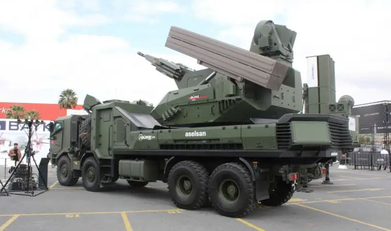 Турция давно и успешно работает по направлению создания систем ПВО для своих Вооруженных сил. В частности, турецкая компания Aselsan начала производство зенитного ракетно-пушечного комплекса Gürz 150, который по факту является прямым аналогом российского «Панцирь-С». При этом западные эксперты считают, что турецкий ЗРПК превосходит российский аналог и пророчат Gürz 150 большое будущее. В качестве одного из основных аргументов приводится модульная конструкция и возможность использования «мягких» систем ПВО. Турецкий Gürz 150 выполняется на базе 4-осного всепроходимого шасси с размещением на нем всех необходимых систем: ПУ для ракет, боевой модуль с 35-мм пушкой, радары, средства наведения и оптикоэлектронного обнаружения, системы распознавания целей. По задумке конструкторов ЗРК должен работать сразу в нескольких диапазонах защиты и в ближнем радиусе, и в среднем. Этого удалось добиться за счет установки на Gürz 150 не только автоматической 35-мм пушки, но и ракет ближнего и среднего ра