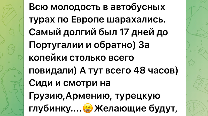 Напишите пару строчек. Вдруг у Вас был опыт автобусных туров. Спасибо.