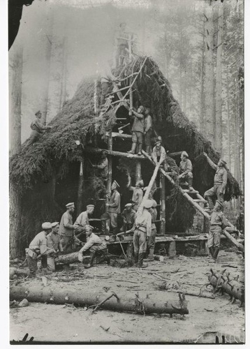 Начну я, как обычно, с фотографий Российской Империи. На этом снимке мы можем видеть, как идет постройка походной церкви, во время Первой Мировой войны. Не зря говорят, что в окопах атеистов не бывает.