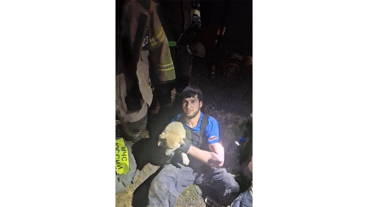 В Чечне пожарные спасли щенка, застрявшего в бетонных плитах