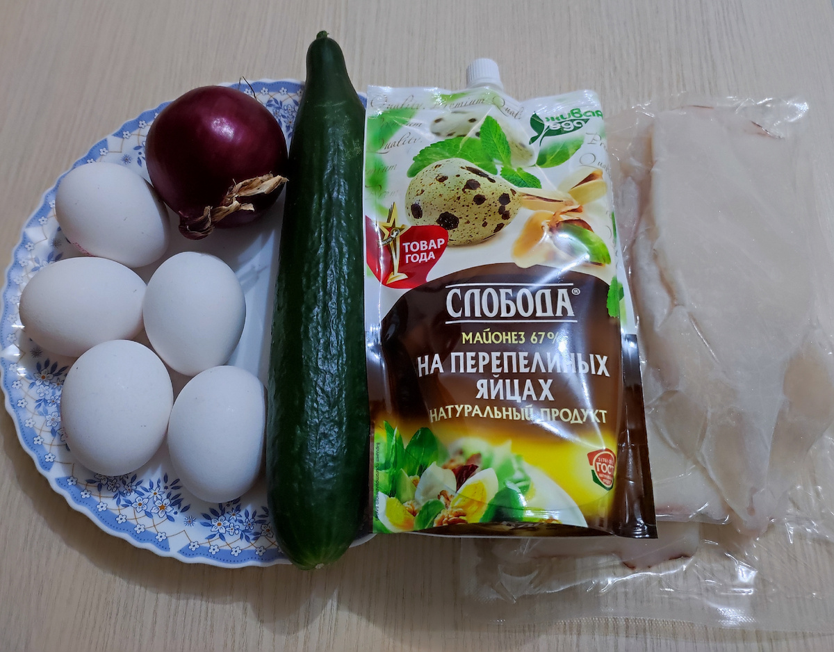 Друзья, всем привет! Кто любит салаты с кальмарами? Присоединяйтесь! Сегодня буду готовить лёгкий, вкусный и очень быстрый в приготовлении салат с минимальным набором продуктов. Нам понадобится: кальмары (у меня уже очищенные) 500гр, 5 яиц, один огурец, 1 средняя салатная луковица, майонез для заправки, соль, сахар, лимонный сок. Кальмары опускаем в кипящую воду на 2 минуты и сразу вынимаем их. Пока остывают кальмары, отвариваем яйца и маринуем лук. Луковицу нарезаем полукольцами, добавляем 1 ч. л сахара, половину чайной ложки соли и 1 ст. ложку лимонного сока, добавляем 50 мл. воды и оставляем на 15 минут. Теперь осталось порезать наш салат. Кальмары нарезаем соломкой. Огурцы также нарезаем соломкой. Яйца нарезаем небольшими кусочками. Складываем всё в салатник, добавляем лук без жидкости, солим по вкусу и заправляем майонезом. При подаче можно добавить свежей зелени. Приятного аппетита и хорошего настроения всем! Готовьте с любовью!