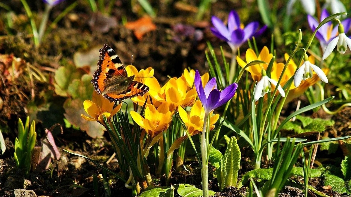 Крокусы, настоящие «предвестники весны» из семейства Ирисовые, они делятся на осенние и весенние. Ранние крокусы, такие как крокус крымский или анкирский, зацветают в феврале, пробиваясь сквозь снег (зоны зимостойкости - 3–8). Их история уходит корнями в древность, например шафран, получаемый из рылец осеннего крокуса, ценился на вес золота как пряность и краситель. Весенние же виды радуют палитрой от нежно-голубого до насыщенно-фиолетового, например, как крокус Томазини, названный в честь сербского ботаника, он образует целые лиловые ковры.