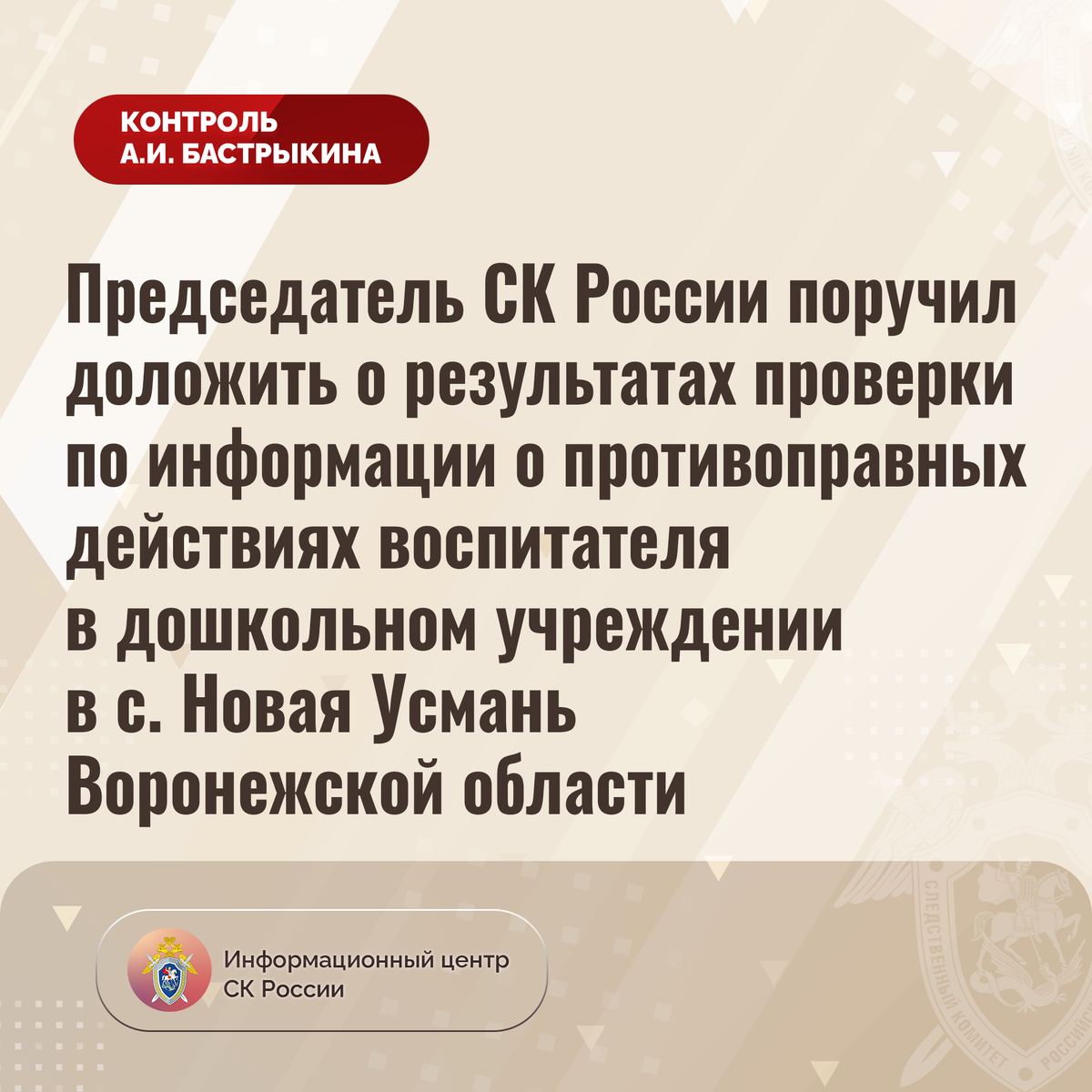Председатель СК России поручил доложить о результатах проверки по информации о противоправных действиях воспитателя в дошкольном учреждении в с. Новая Усмань Воронежской области