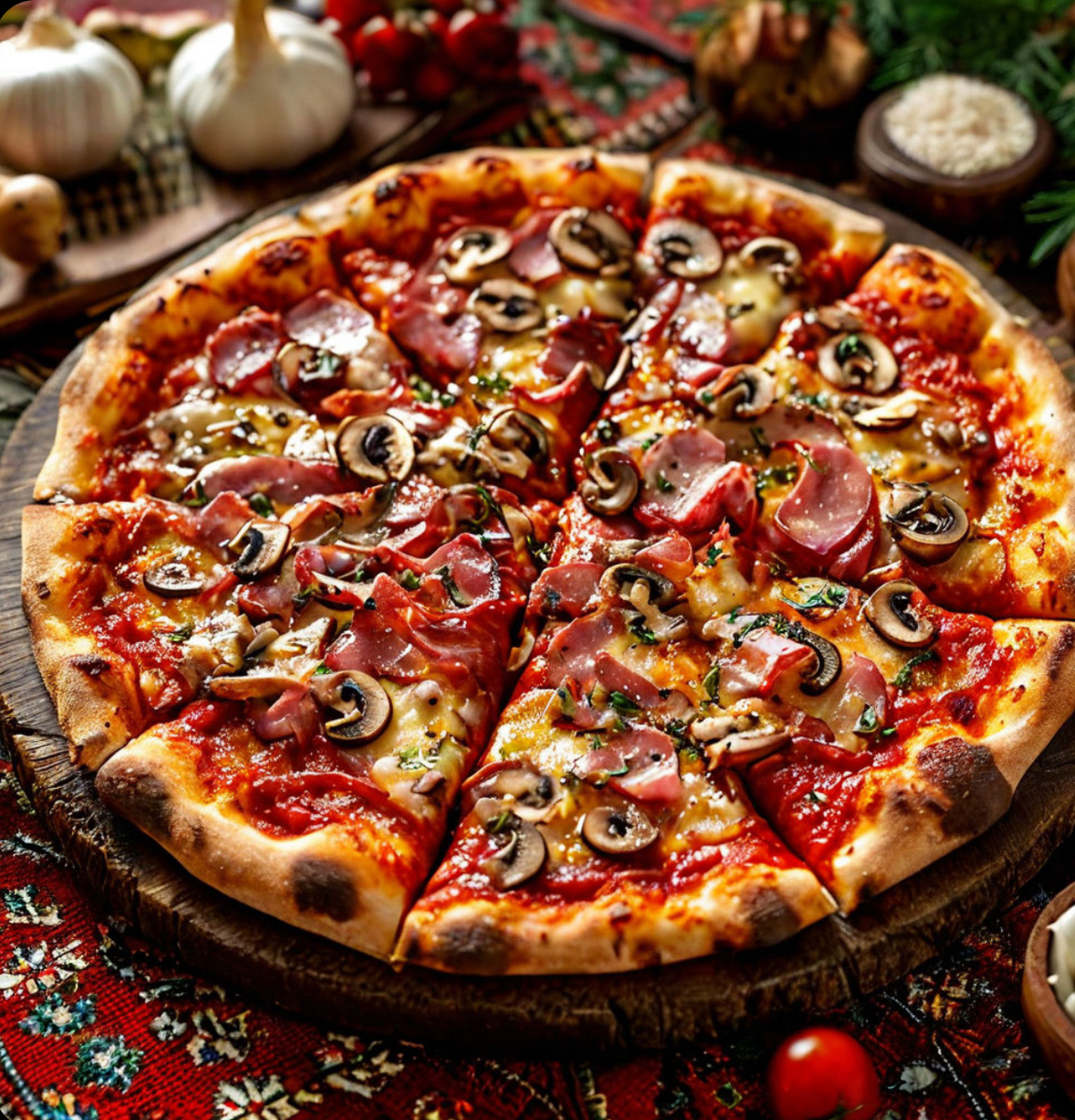 Мясная пицца — это классика с современным подходом. В основе лежит идеальное тесто, богатый томатный соус болоньезе и сытная начинка с копченой колбасой, ветчиной и грибами. Главное правило: свежие ингредиенты и правильная температура выпечки.