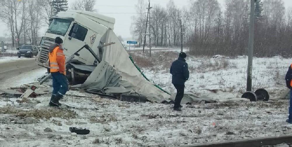 Появились кадры с места столкновения белорусской фуры и брянской электрички
