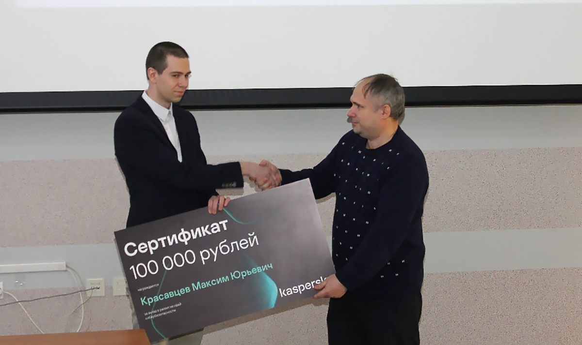 Максим Красавцев, студент магистратуры Физико-технического института, стал победителем в соревнованиях по кибериммунной автономности от Лаборатории Касперского. Он победил в индивидуальном зачете и получил сертификат от компании «Касперский» на сто тысяч рублей. Об этом сообщил сайт ПетрГУ. В течение 2024 года Максим Красавцев активно принимал участие во всех соревнованиях, организуемых Лабораторией Касперского, а также прослушал несколько мини-курсов. Он активно и с интересом изучает инновационные подходы к созданию кибериммунных систем, которые способны автоматически адаптироваться к новым угрозам в режиме реального времени. Награждение состоялось в рамках научного семинара «Энергетика России». // Фото: ПетрГУ