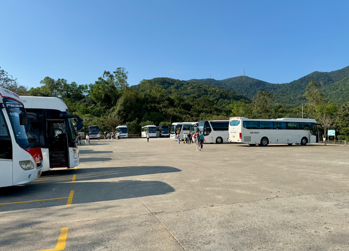 Дождались солнца в Дананге, ура! Тут же собрали вещи и помчались на одну из главных достопримечательностей города - Храм Леди Будды! Конечно, у Будды не было Леди, женщина в буддизме вообще за человека не считается. Речь идет про богиню Гуань Инь, которую очень почитают во Вьетнаме. Статуя богини в Дананге самая большая во всем Вьетнаме и, конечно, обязательна к посещению, если окажетесь в этом городе или рядом :) К Леди Будде мы поехали на такси (внезапно!) и это, конечно, был не провал года, но.. впрочем, расскажу по ходу пьесы) Такси "Максим" от наших апартаментов стоило 85 000 донгов (340 р), а обратно мы ехали такси Граб за 120 000 донгов (480 р), просто потому, что такси из "Максим" просто-напросто не приезжало.. Таксист высадил нас на просторной парковке, где мы слегка приуныли от количества громадных туристических автобусов.. Групповой туризм - это зло! Основной поток туристов в Дананге - это корейцы. Как известно, эти ребята предпочитают передвигаться большими группами, фоткат