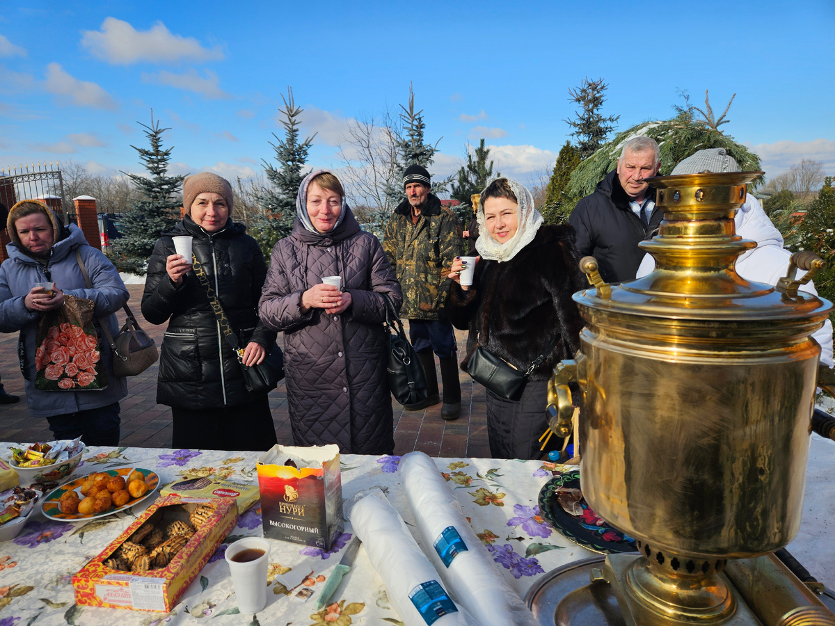 В храме Рождества Христова закончилось Богослужение на Сретение Господне. Но мы еще не расстаемся. У нас Сретенское чаепитие! Село Мокрый Корь, Ясногорский район Тульской области. 15 февраля 2025 года.