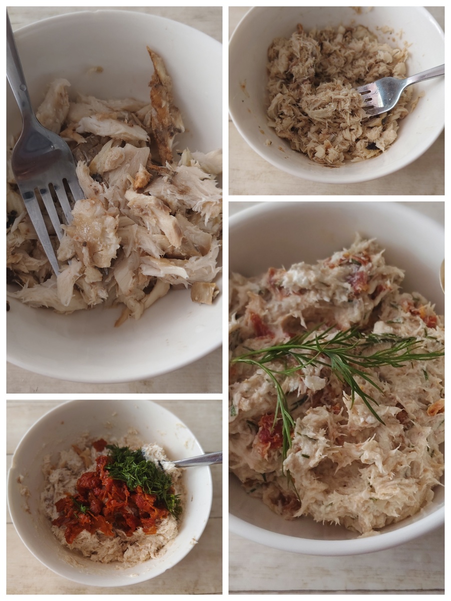 Сегодня к завтраку простой и быстрый риет из оставшегося кусочка скумбрии .
