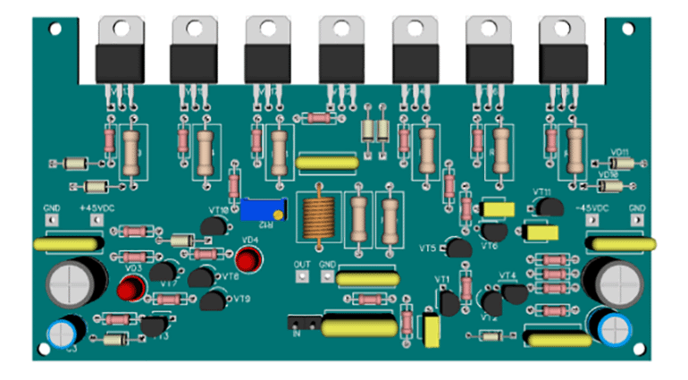В публикации из раздела УМЗЧ представлен мощный усилитель на комплементарных mosfet-транзисторов IRF640/IRF9640 в выходном каскаде, которые включены в параллель. Идея схемы заимствована из журнала «Electronics World» №8/2001. Данные транзисторы имеют корпус TO-220 и для эффективного отвода тепловой энергии одной пары было бы мало для выходных мощностей более 50 Вт. В схеме применены три пары этих транзисторов. Все выходные транзисторы работают в «щадящем» режиме – на максимальных мощностях ток через каждую пару не превышает 1 А, а выделяется на каждом из транзисторов не более 16 Вт, при этом начальный ток (ток покоя) составляет 50 мА через каждую пару, а общий соответственно 150 мА. Несмотря на относительно большую выходную мощность – 160 Вт и низкий коэффициент гармонических искажений, который при номинальной выходной мощности на частоте 1 кГц равен 0,005%, а в диапазоне от 20…20000 Гц не превышает 0,015%, схема довольно проста, легко повторима и не требует какой-то особой наладки.