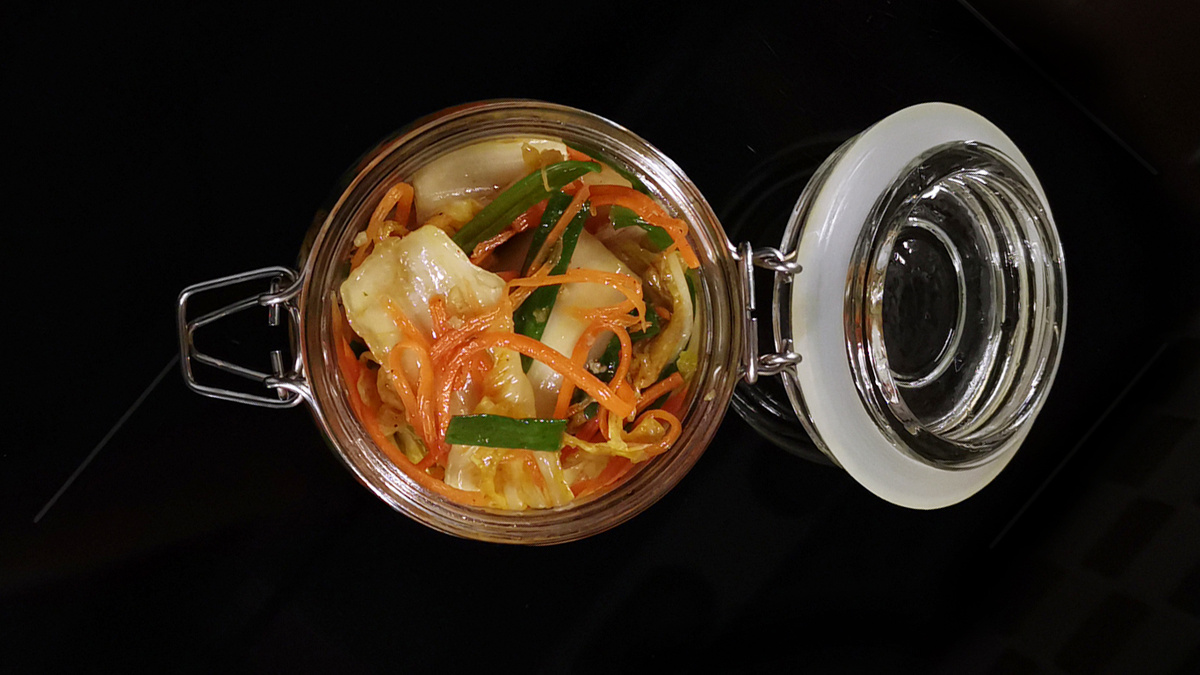 Раньше покупала корейские закуски и салаты в магазине. Жаль, что не знала, как это просто и быстро готовить. Теперь такой салат у нас практически всегда есть в холодильнике. А если нет, то делаю за 5 минут и через полчаса уже едим. Сразу скажу - это, конечно, салат не по строгим правилам, но вполне себе в корейском духе. Зато никаких заморочек и сложностей. А весь секрет в заправке. Потому что овощной состав самого салата непосредственно может быть любым. Сегодня у меня для вас очень короткий рецепт. Вкусный, простой и быстрый. Мне кажется проще и быстрее это сделать уже невозможно. А вкус будет реально по-корейски. Если не знать, что готовится с такой легкостью и без лишних действий, то догадаться никто не сможет. Итак, берем овощи, какие хотим. По сути главное - это пекинская капуста и морковь. Остальное можно добавлять на свое усмотрение или вообще не добавлять. Из того, что можно добавить как классику - это лук и редька. Лук любой, хоть репчатый, хоть зеленый, хоть порей. И редька