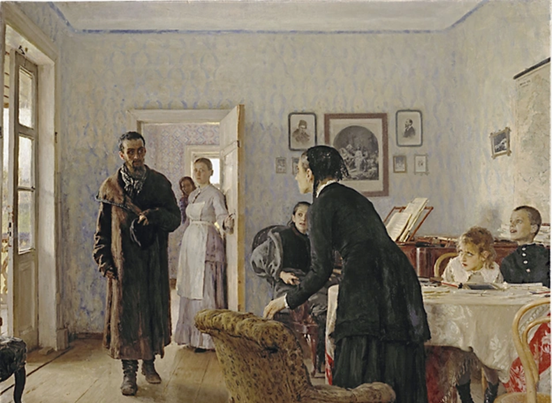 Сегодня пятница, последний день каникул, так что начнем готовиться к учебе. Скажите, хорошо ли вы помните картину Репина «Не ждали?»