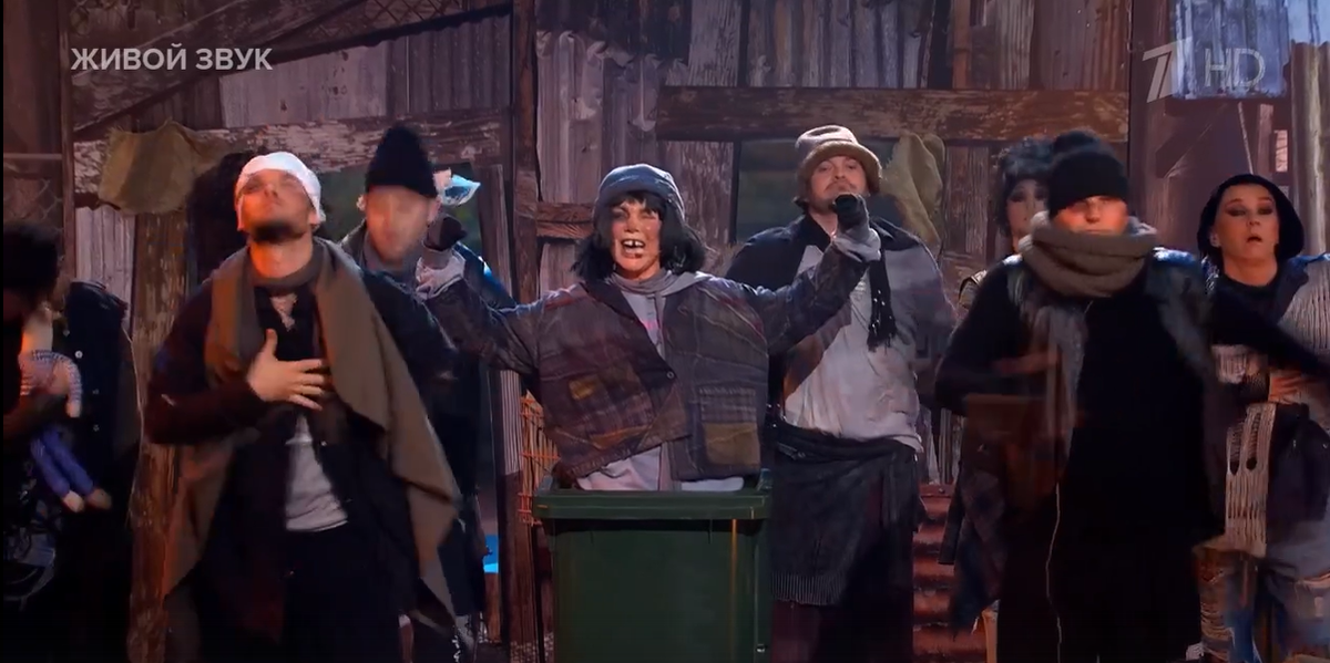 А тут... Я не знаю, как описать эту постановку. "Из жизни бомжей"? Мне не понравился номер именно режиссерски. Про вокал я не говорю, но даже прекрасный вокал нельзя оценивать в отрыве от того, что ты видишь на сцене. То, что я увидела, у меня только на Валет. Да и вокал был так себе.