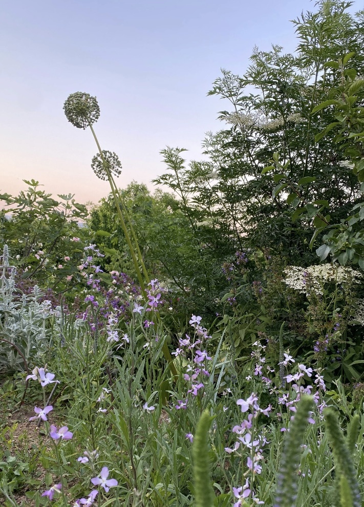 16.02.25 Ранняя маттиола двурогая рассадой стала удачным проектом, поскольку успела подрасти и зацвести до наступления июльского зноя. Получилась ранняя рассада благодаря общеизвестному методу. Прикрыть пластиковой бутылкой. Маттиола взошла дружно, пикировать не хотелось. Потому как рассады было много и пикировать надо было много. Посчитала, что маттиола должна выжить и отправила на улицу почти сразу после всходов. В марте. Рассадила мелюзгу кучками под бутылки. Подумала, что лишнее можно будет прополоть позже. Также пластик стал преградой для улиток и слизняков. А ещё эта пластиковая универсальная «система» конденсирует влагу и защищает от иссушающего ветра. Одновременно проветривается. Короче, маттиола в тот год удалась.)) Честно, думала, что наш ветер сдует пластик напрочь. Углубила, окучила. Держались, можно пользоваться, другого спасу нет от слизняков и улиток. Стебель цветущего морозника был безжалостно подрезан, несмотря, на рассыпанную вокруг «грозу» и золу. Летним июньски