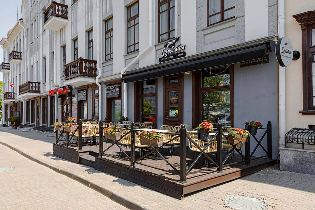 Великолепные настойки сделают драники более вкусными. В “Бульбаше” отличные первые блюда и их сервировка. Здесь можно насладиться совершенно замечательной ухой из осетрины и форели, причем вся рыба будет белорусской. К ухе сервируют поджаренные тосты с красной икрой. Похлебка из полесских грибов удивит насыщенным вкусом, непохожим на обычные грибные супы, а классический белорусский борщ с салом способен вызвать восторг у любого самого придирчивого ценителя этого блюда.