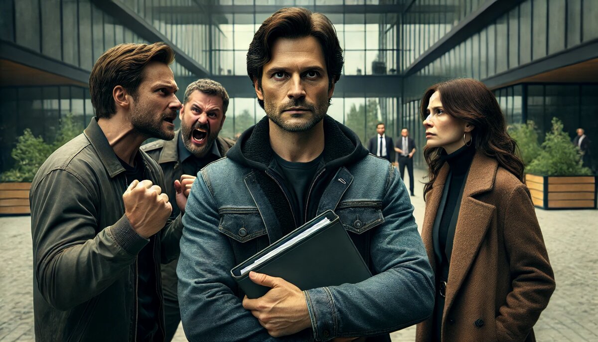 День заседания. Сижу в коридоре районного суда, чувствую напряжение в воздухе. Марина нервно ходит туда-сюда, выставляя вперёд нижнюю губу, как обиженный ребёнок. Алексей делает вид, что спокоен, но руки у него дрожат, он постоянно залезает в телефон, пытаясь кому-то звонить. Уверен, ищет поддержку или план «Б».