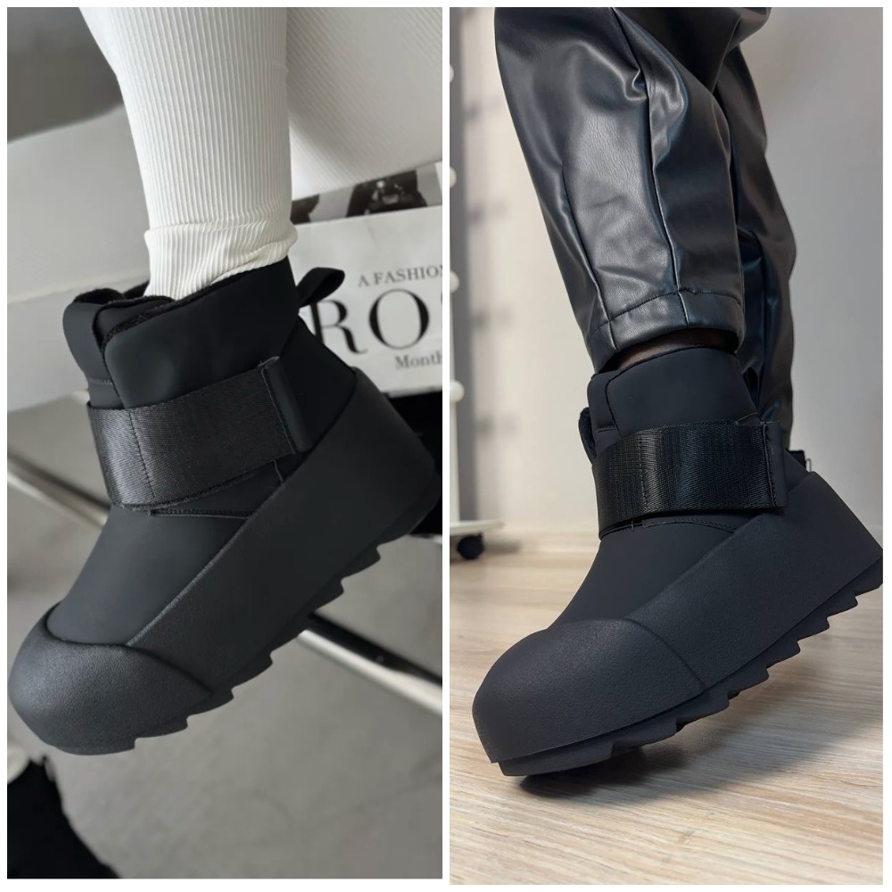 Дутики смотрятся очень мило и, в то же время, стильно и лаконично. Они очень теплые, потому что подкладка и стелька выполнены из шерсти, и невероятно комфортные. Модель абсолютно непромокаемая, с удобной высокой подошвой.