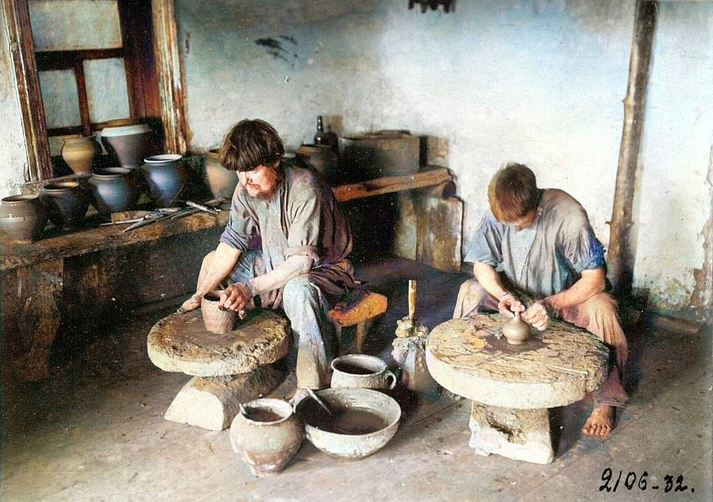 Гончар, что сидит правее, делает, кстати, кацею. Кацея - разновидность кадильницы.