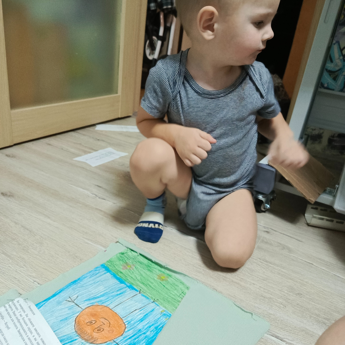 Сын сказал, что ему нужно подарок подруге подарить. Попросил сшить кофту. Начали с ним выбирать ткань из моих запасов и попался мне отрез футера пике красивого цвета "полынь". Я когда-то покупала ее для себя, но так ничего и не сшила. Сын ткань забраковал - сказал цвет красивый, но фактура не очень ))) А я посмотрела на эту ткань и решила, что всё-таки нужно сшить себе что-нибудь. Нашла уже распечатанную выкройку свитшота от Екатерины Измайловой и принялась кроить. Вася активно помогал. В процессе раскроя я столкнулась с той же проблемой, что когда-то помешала мне сшить из этого отреза запланированный свитшот: ткани на рукава не хватало. Пришлось вспомнить про свой любимый прием: Разрезала рукава пополам - так точно можно уместить на ткани всё, что угодно ))) А потом я начала шить... Ох, и натрепала же я себе нервы! Ткань действительно оказалась не очень 😂 Ладно, ткань нормальная, но помучиться мне пришлось и пошив значительно растянулся по времени. Всё дело в том, что Вася, поросен