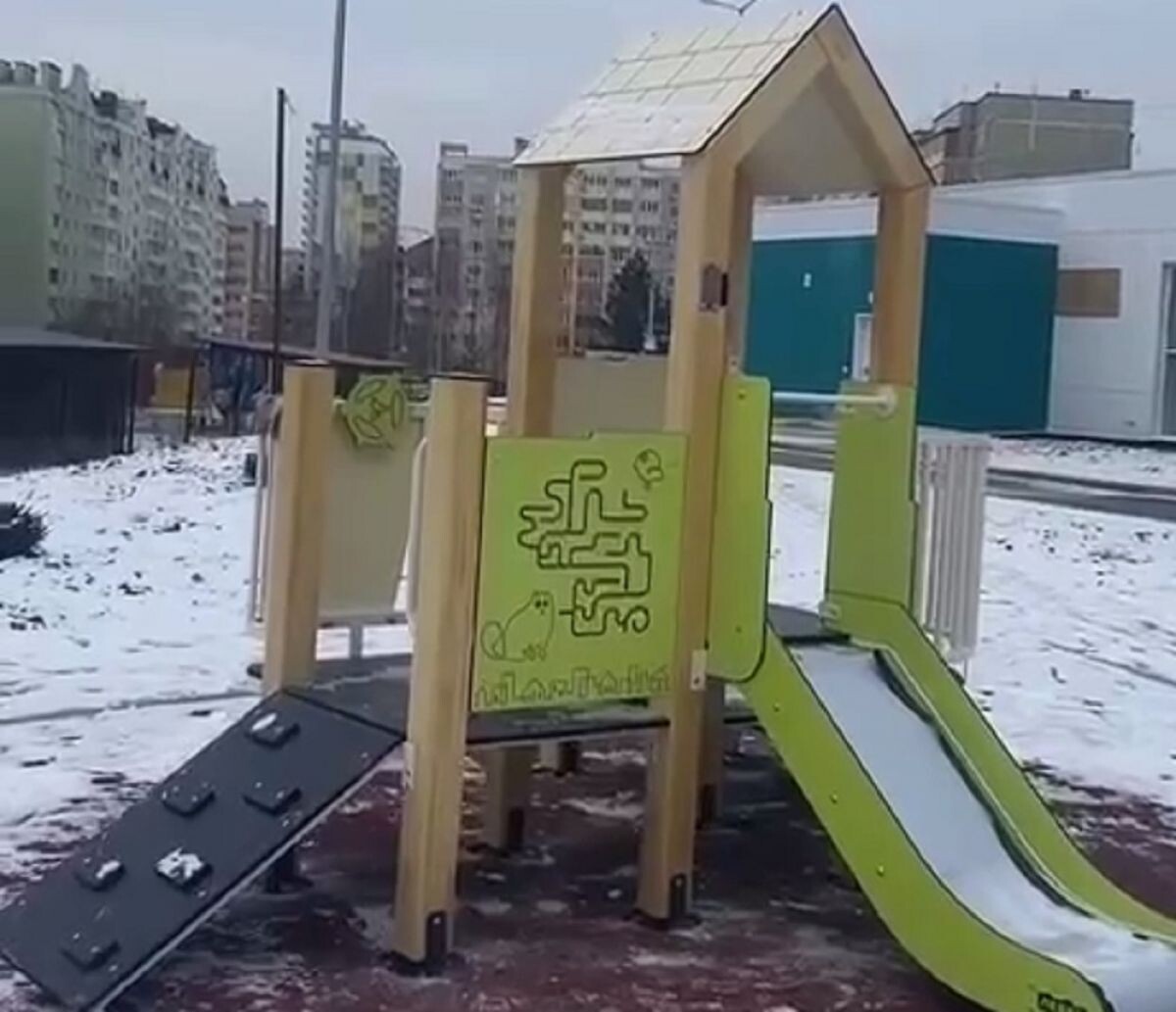 У новой поликлиники на Правом Калуги установили детскую площадку