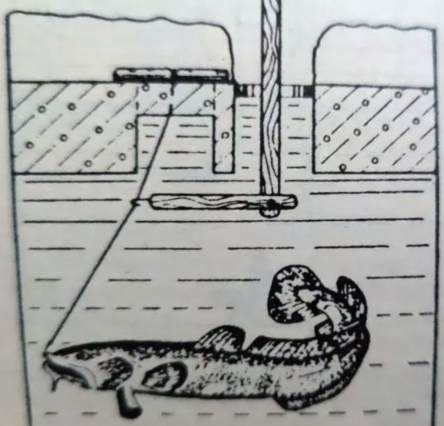Как ловить зимой щуку, чтобы удивлялись даже опытные рыболовы? Нет проблем! Поможет этот секрет из «Универсального справочника рыбака», которым можно легко пользоваться. В зимнее время рыболовы оставляют жерлицы в лунках на ночь, а иногда на несколько суток. За это время лунки промерзают, и без риска перебить леску пешней ни одну лунку не расчистишь. Чтобы не рисковать, нужно рядом со старой лункой пробить новую, в которую и выводится леска жерлицы. Это делается с помощью простого приспособления, как на рисунке к информации. Надо взять деревянные рейки, одна длиннее, другая короче, и на последней сделать проволочный крючок. Обе рейки шарнирно скрепляются. В лунку их вводят в сложенном или развернутом виде. Подо льдом короткая рейка принимает горизонтальное положение и прижимается к нижней части льда. Если ее повернуть, то она обязательно захватит крючком леску. Такое приспособление можно делать и из толстой проволоки, лишь бы она заходила в лунку и захватывала леску.