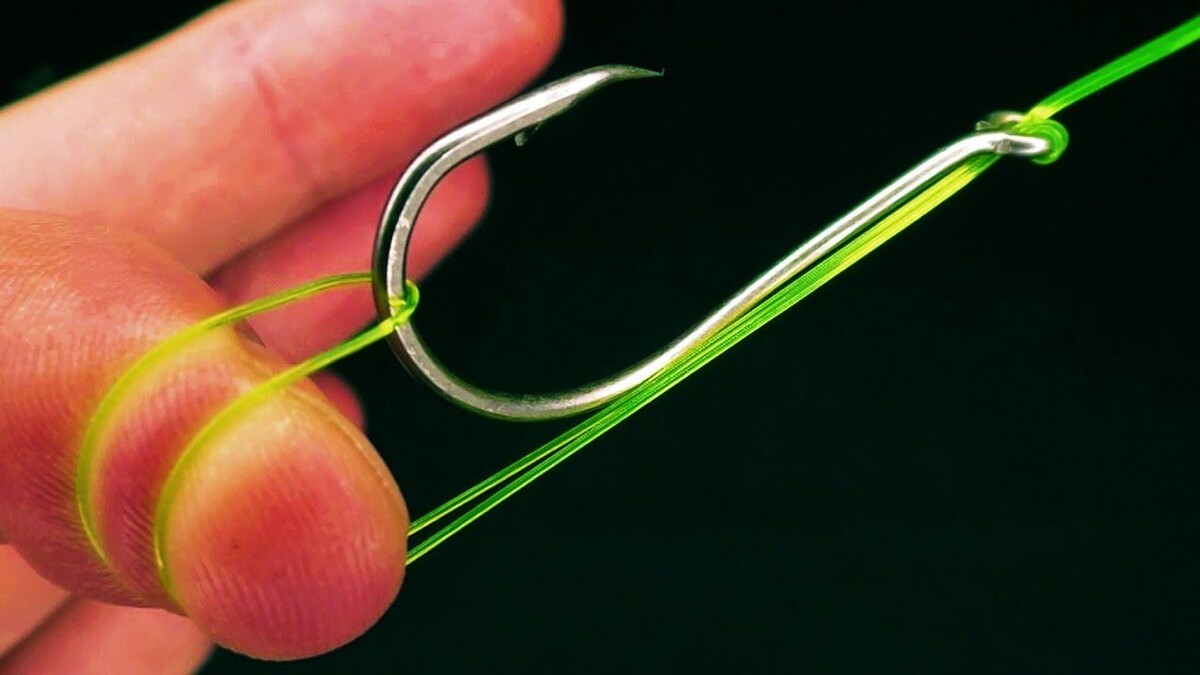 Если на поводке есть незатягивающаяся петля, то проще всего привязать крючок так: продеть петлю в ушко, затем перекинуть через крючок, чтобы получилась глухая петля. Этот метод хорош для хлопковых и тонких полиамидных лесок, а также для петлей из мягкой проволоки. Еще э