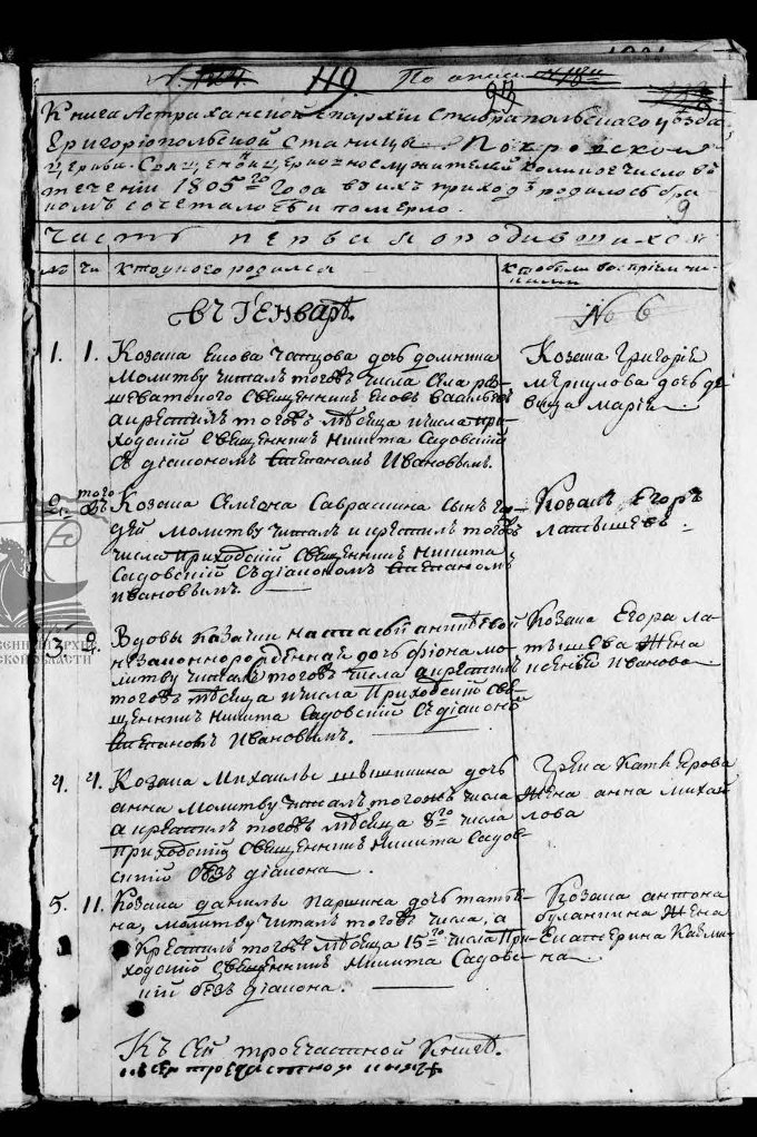 Метрическая книга станицы Григорополисской за 1805 год (Ставропольский край)