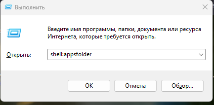 Команда shell:appsfolder используется в Windows для открытия системной папки "Приложения" (AppsFolder) через проводник. Эта папка содержит ярлыки для всех установленных приложений, включая классические настольные программы и универсальные приложения (UWP) из Microsoft Store.