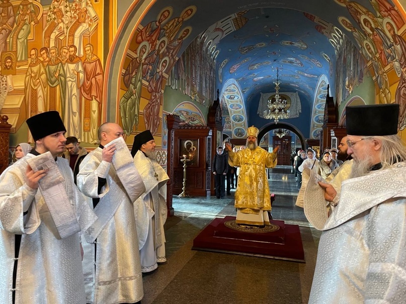 Владыке сослужили игумен Виталий (Уткин), иеромонах Феофан (Наумов), иерей Михаил Куприянов, протодиакон Павел Коник, иеродиакон Авксентий (Фокин) и иеродиакон Варнава (Лагута).