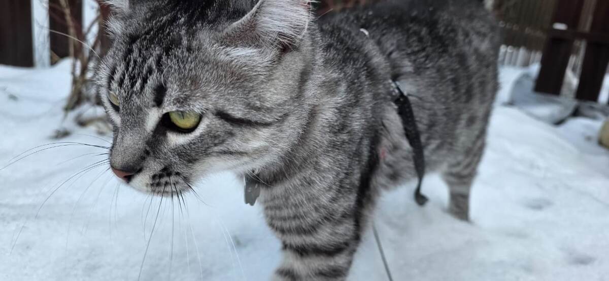 Это Плутон. У нас снега выпало очень много, Плуто рвётся гулять, невзирая ни на какие погодные условия. Просто красавчик, а не котяра. Злится он потому, что на него надели шлейку - в ней Плуто чувствует себя не вольным супергероем, а каким-то лохом на привязи. Вообще-то Плуто - милейшее создание. С домашними он добродушный увалень с мягкими лапками. Мягкие лапки дома - всегда! Хоть что с ним делай! Но надо отметить, что животных в нашем доме не обижает никто. Гулять Плутон очень любит, как впрочем и Марс. Не знаю, как Венера, потянет ли её на улицу после всего перенесённого, но шлейку она не потерпит однозначно. Мы даже ошейник не будем ей предлагать - уверена, для неё это будет психологический стресс. Наши-то ещё с пелёнок в ошейниках, поэтому практически с ними сроднились и вообще их не замечают. Другое дело - Венера. Она как Маугли. Дикое создание. До сих пор не может полностью расслабиться, когда спит. Обязательно надо залезть в какой-нибудь укромный уголок, чтобы почувствовать св
